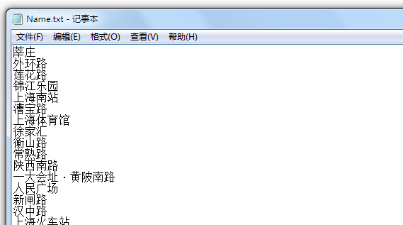 首先是一个文件,记录了所有的站名,这个文件内容比较长,摘录一部分下来。这个文件可以作为我们的输入文件来用。