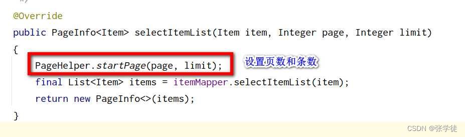 先调用 PageHelper.startPage(page, limit); 进行设置页码和条数,然后进行开始执行查询,最后用 PageInfo 类以这种类的数据格式进行返回。