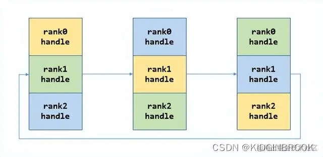 每一次将自己的data发送给对应的rank,然后接收其他rank发送过来的data,如下图。