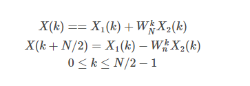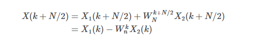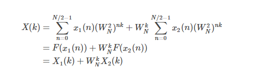 于是,将原来的N点傅里叶变换变成了两个N/2点傅里叶变换的线性组合。