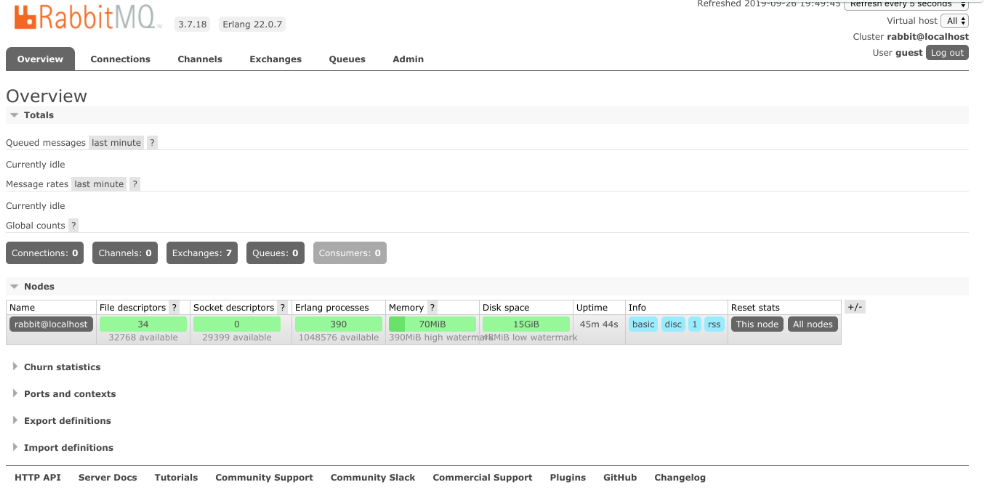 rabbitmq-plugins enable rabbitmq_management 出现如下说明: Enabling plugins on node rabbit@localhost: rabbitmq_management The following plugins have been configured: rabbitmq_management rabbitmq_management_agent rabbitmq_web_dispatch Applying plugin configuration to rabbit@localhost... The following plugins have been enabled: rabbitmq_management rabbitmq_management_agent rabbitmq_web_dispatch set 3 plugins. Offline change; changes will take effect at broker restart.