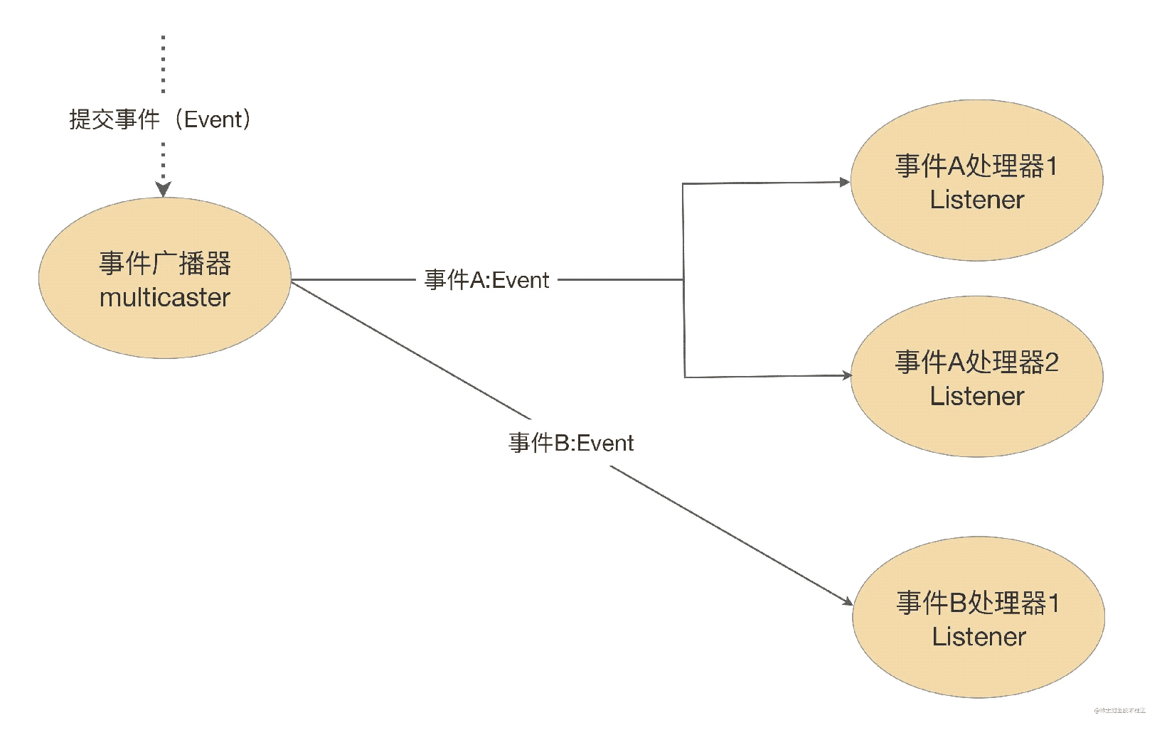 2,广播器Multicaster:当事件发生时,将事件广播出去。