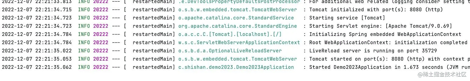 不过,虽然名字看起来似乎是一个上下文启动时的事件,但是Spring启动时并不会发布这个事件,我们启动项目看下控制台是否会打印日志:
