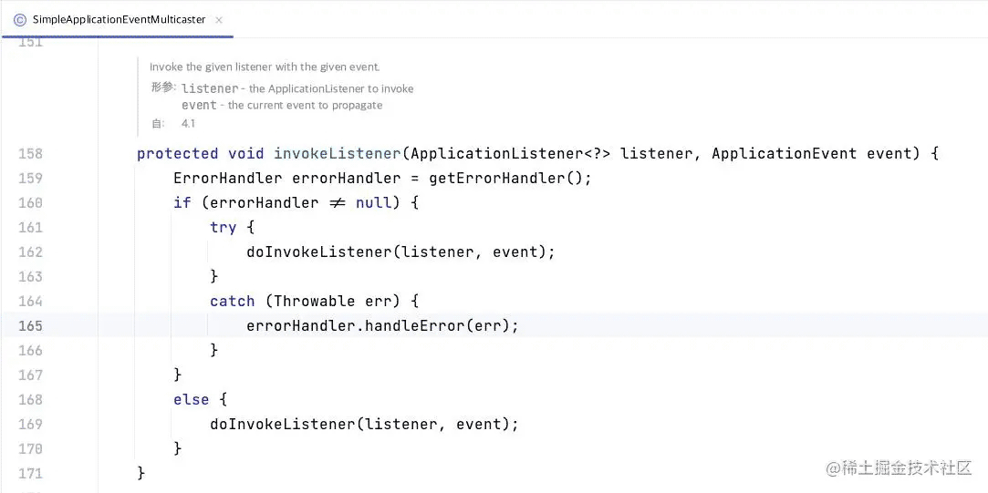 通过上图可以看出,如果在没有定义线程池的情况下,在invokeListener方法中会调用doInvokeListener方法去执行真正的逻辑,在doInvokeListener方法中,如果抛出了异常,会导致后的Listener失效。