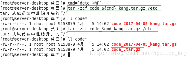 tar -zcf code_$cmd_kang.tar.gz /etc //会有歧义,因为系统会不清楚是应该解析$cmd还是cmd_kang