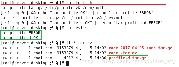 常用来判断上一步是否成功(压缩失败打印ERROR压缩成功打印OK):