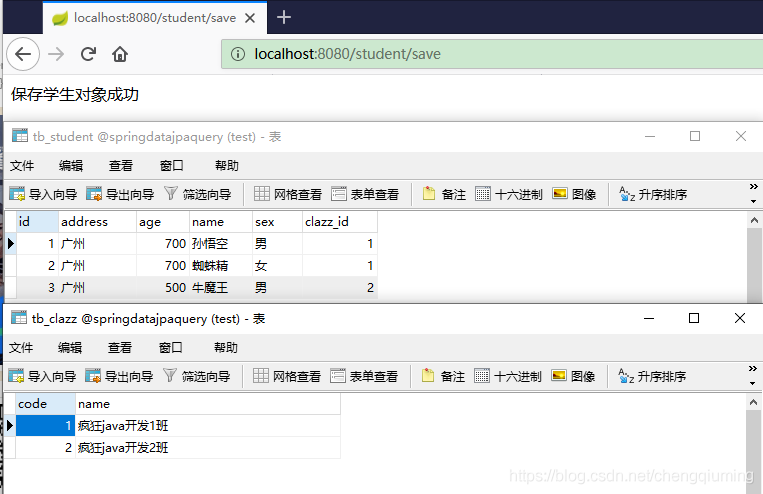* 使用@Query注解的形式,查询某个学生属于哪个班级