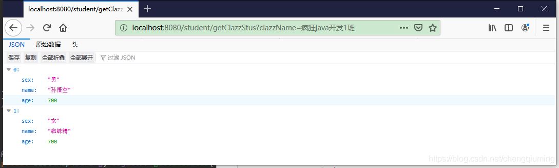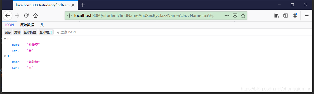 * 使用@Query注解的形式,查询某个班级下所有学生的姓名和性别