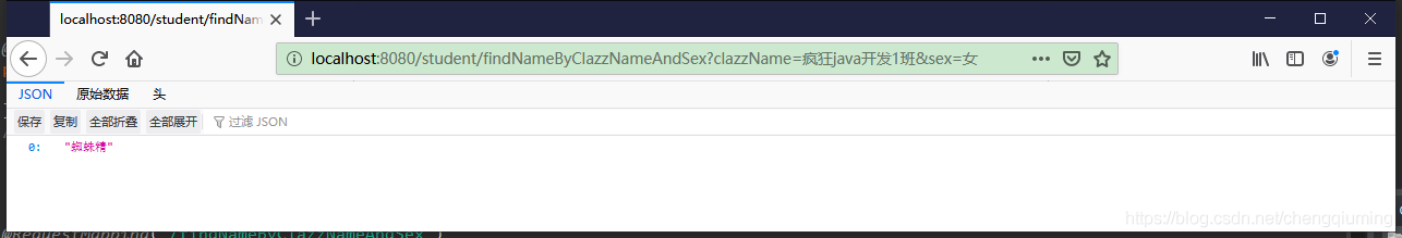* 使用@Query注解的形式,查询某个班级下某种性别的所有学生的姓名