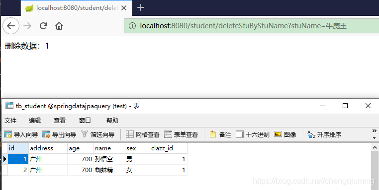 * 例如删除牛魔王这个学生