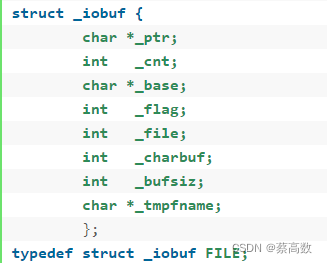 C语言的stdio.h头文件中定义了用于文件操作的结构体FILE。通过fopen返回一个文件指针(指向FILE结构体的指针)来进行文件操作。可以在stdio.h头文件中查看FILE结构体的定义,如下: