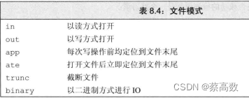 每个流都有一个关联的文件模式(file mode),用来指出如何使用文件。表8.4列出了文件模式和它们的含义。