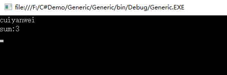 Action<string> action = s => { Console.WriteLine(s); }; action("cuiyanwei"); Func<int, int, int> func = (int a, int b)=>{ return a + b; }; int result=func(1, 2); Console.WriteLine("sum:{0}",result); Console.ReadLine();