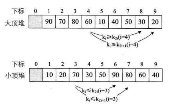 - 每个结点的值都大于或等于其左右孩子结点的值(大顶堆),或每个结点的值都小宇或等于其左右孩子的值(小顶堆)。