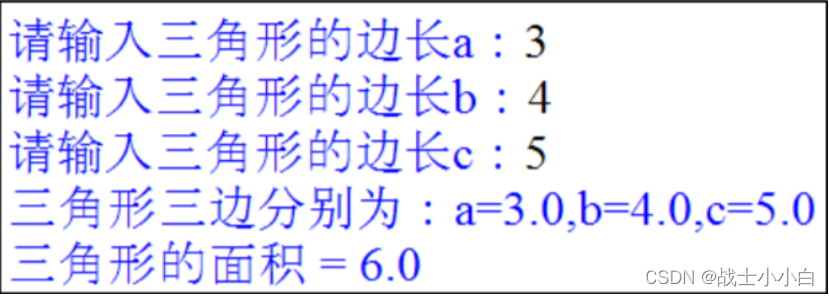 print('三角形的面积={0}'.format(area))